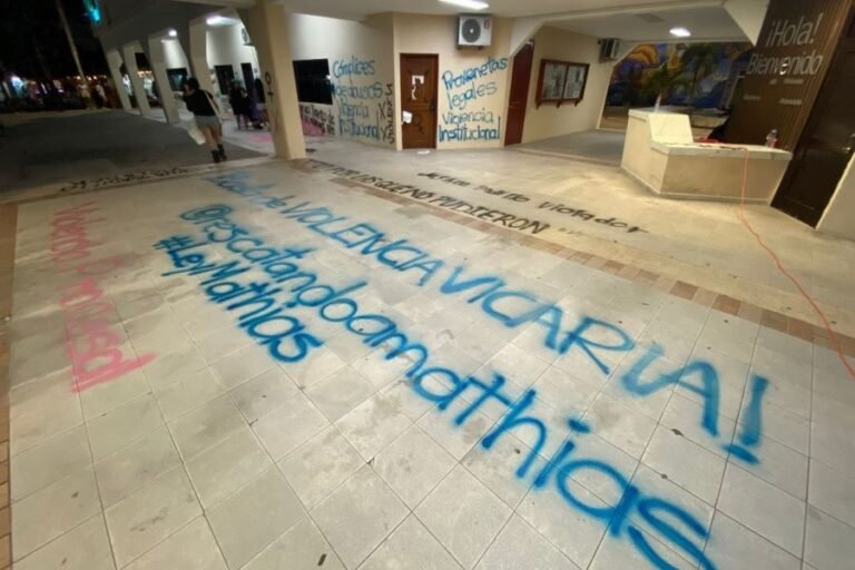 Entre los grafitis se encontraban nombres de hombres que han sido acusados de ser agresores y feminicidas, así como diversos mensajes de protesta como «Fuimos todas», «Violencia procesal», «Basta de violencia vicaria».