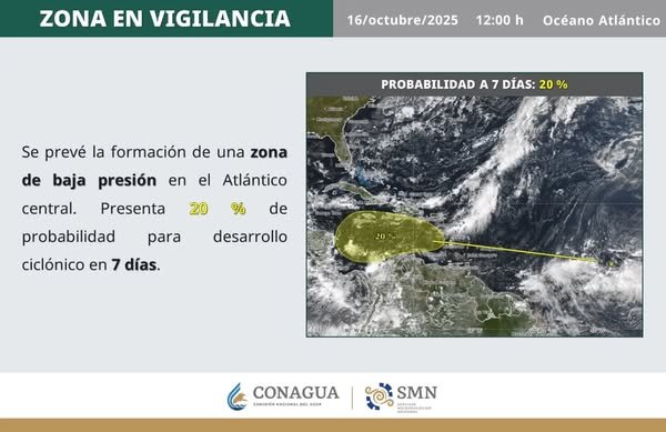 La temporada de huracanes 2025 en el Atlántico se mantiene activa hasta el 30 de noviembre, y octubre suele ser un mes de especial vigilancia para el Caribe mexicano, debido a las condiciones favorables de temperatura en la superficie del mar y la baja cizalladura del viento.