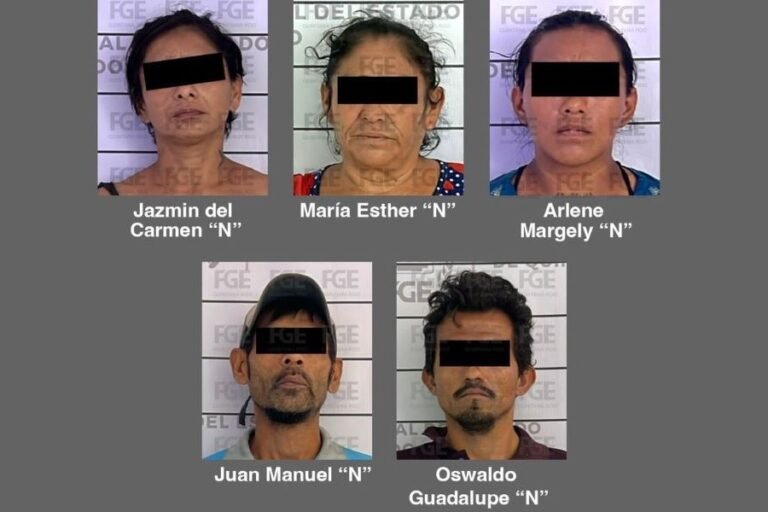 Asimismo, cerca del predio fueron detenidos quienes responden a los nombres de Oswaldo Guadalupe “N”, María Esther “N”, Arlene Margely “N”, Juan Manuel “N”, Jazmín del Carmen “N”, a quienes, tras la revisión correspondiente, les encontraron dosis de sustancias con características similares a estupefacientes.