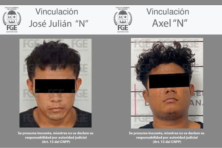 CANCÚN.— Dos hombres identificados como Axel “N” y José Julián “N” fueron vinculados a proceso por el delito de homicidio calificado, luego de que la Fiscalía General del Estado (FGE) presentó ante un Juez de Control, pruebas que los relacionan con el asesinato de un hombre.