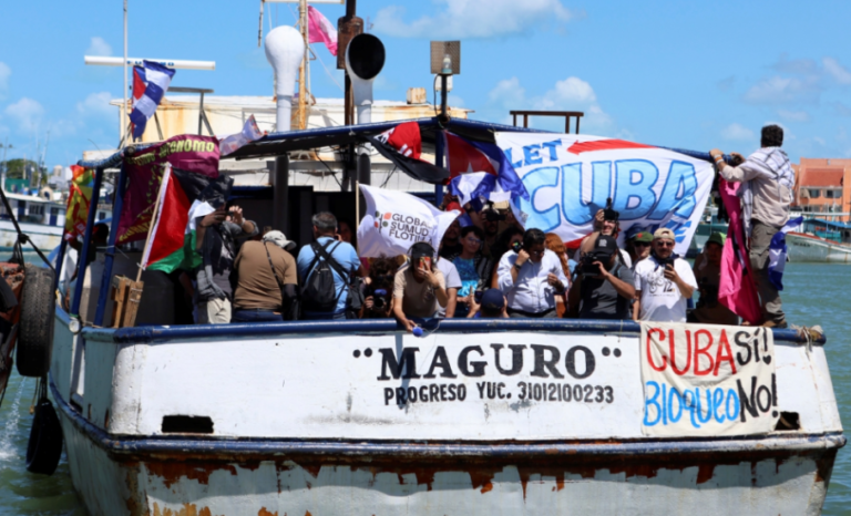 De acuerdo con los organizadores, la embarcación que partió desde Puerto Progreso transporta cerca de 30 toneladas de ayuda, entre alimentos, medicamentos, productos de higiene y paneles solares recolectados por organizaciones de la sociedad civil.